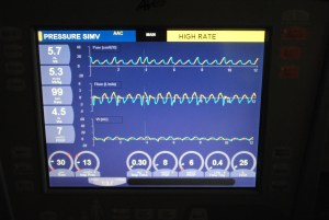 Today was the day!!! Mr. Sam finally got taken off his ventilator. I’ve been waiting to do another post until this day, and we are so excited he’s able to breathe on his own again! For the past few days, he has been breathing on his own, but the doctors wanted to wait a few days until they were 100% confident he would be able to once he was off the vent and his lungs were strong enough. Every yellow line that you see on the picture below is Sam breathing on his own.