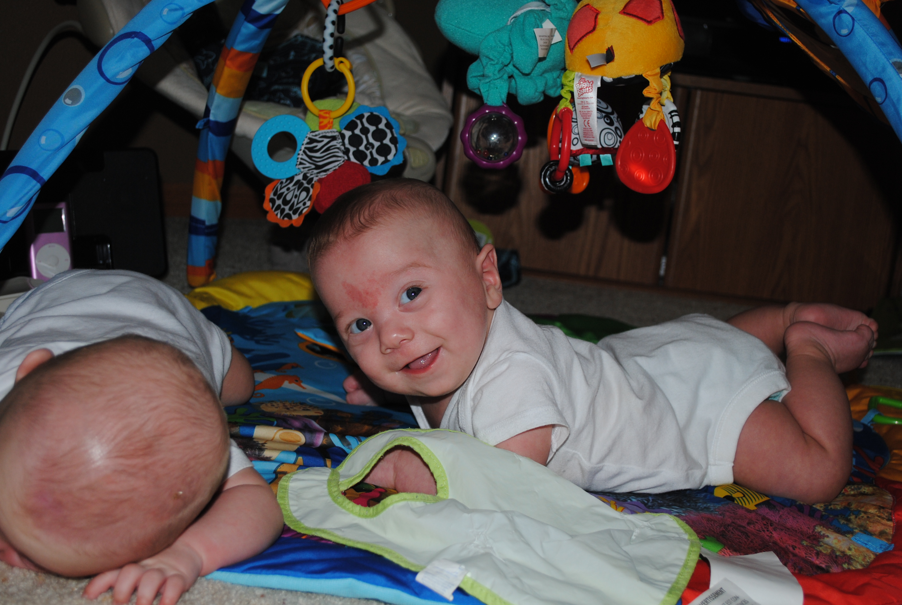 The twins had their 6-month checkup today! Jack is a whopping 12lbs, 10oz and Sam is 11lbs, 6oz.