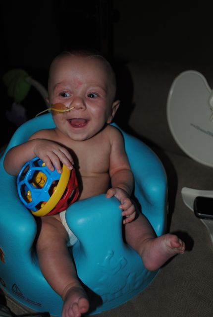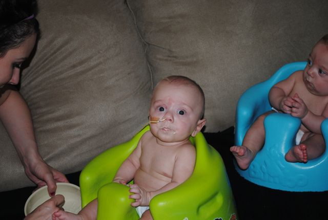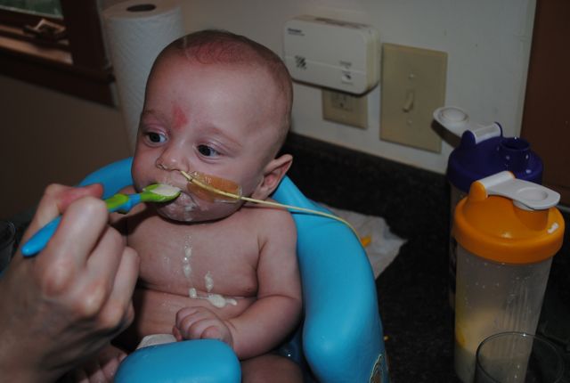To update everyone… we have started feeding the boys “human food!” Sam wasn’t doing so great, but that was pre-cyst-removal. So we’re going to start trying again tonight with the rice cereal.