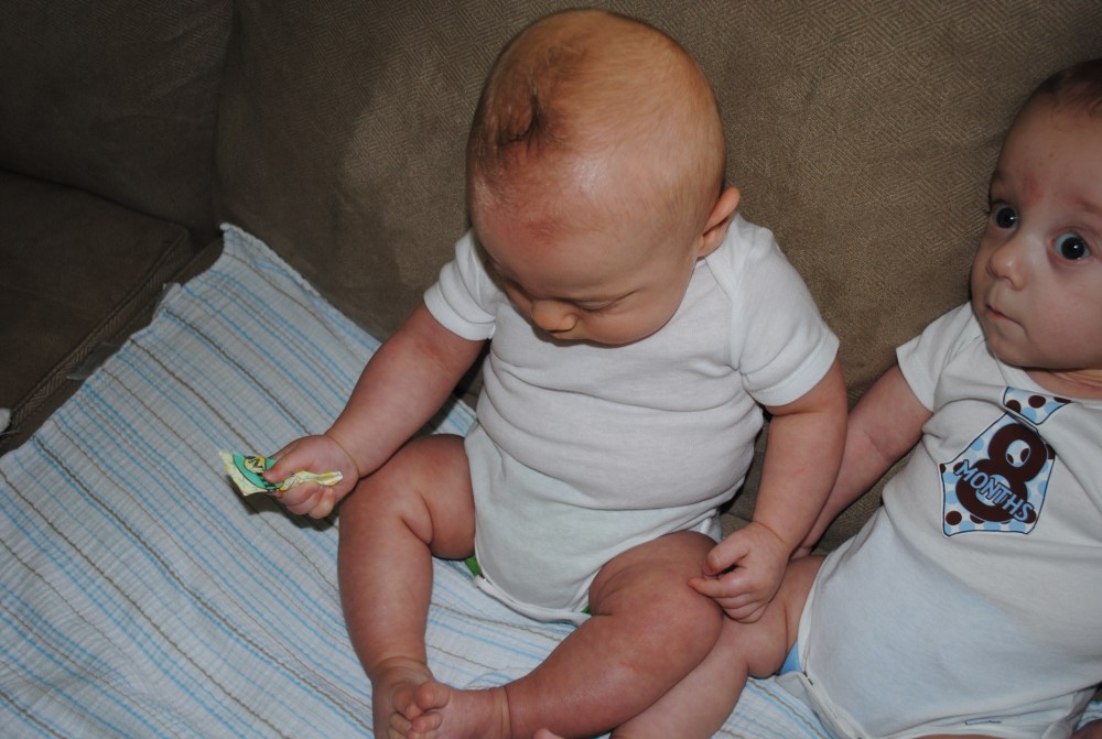 Enter: our savior. bumGenius Elemental One Size All In Ones. These are exactly like a disposable diaper, but you don’t throw them away! No stuffing necessary. Just grab a diaper, and voila! Baby is covered. With twins, we found that if we can make our life even 1/8 easier….we will do it. We have a total of 24, and so far, find that that is enough for us.