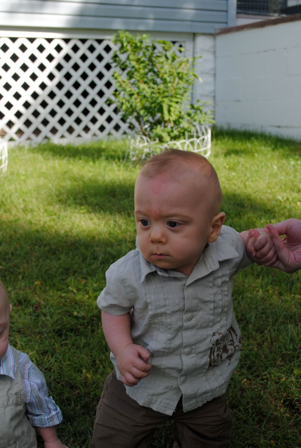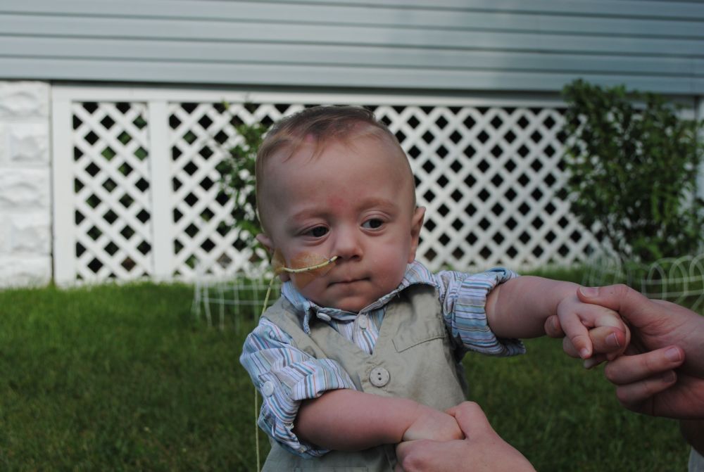 Sam usually tolerates being orally fed. It’s not like he enjoys the process, but he has never, ever cried for me. Until Sunday. Sunday afternoon, Sam decided he was MAD. He saw me coming with the bib and stack of paper towels, and I swear… the kid threw daggers into my heart with the look he gave me.