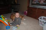 Dad and I arrived in Fargo Saturday night. Mom and Auntie Krysta were slightly excited to see the boys 😉 Lots of playing ensued, and it was great to see our kids back in our hometown again. My family kept on commenting on how much the twins have changed–no longer are they cuddlers, who want to be held all the time. The boys are constantly playing– in the jumper, grabbing for cups (Jack to drink, Sam to knock over), playing with toys, making things be loud, etc… they’re becoming little boys!