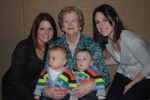 That Wednesday was Grandma’s birthday party, and my dad went out to Leonard, ND to pick her up and bring her into Fargo. He made up some story about having to stop by the house first. As Dad and Grandma walked in, Krysta and I rounded the corner with a boy in arm, and said, “Surprise!” She was shocked, and so excited. It was awesome having her see them again, this time big and healthy. Sam almost never cries, like ever, and of course he chose the 5 minutes before Grandma came over to start crying. Well, the minute she walked in the door and I handed her Sam, he calmed down, and within 2 minutes, he was fast asleep in her arms. Absolutely wonderful! That night we went to dinner with our extended family and saw my aunts, uncles, cousins, and their kids–It was so much fun! Really makes me wish we lived closer to home.