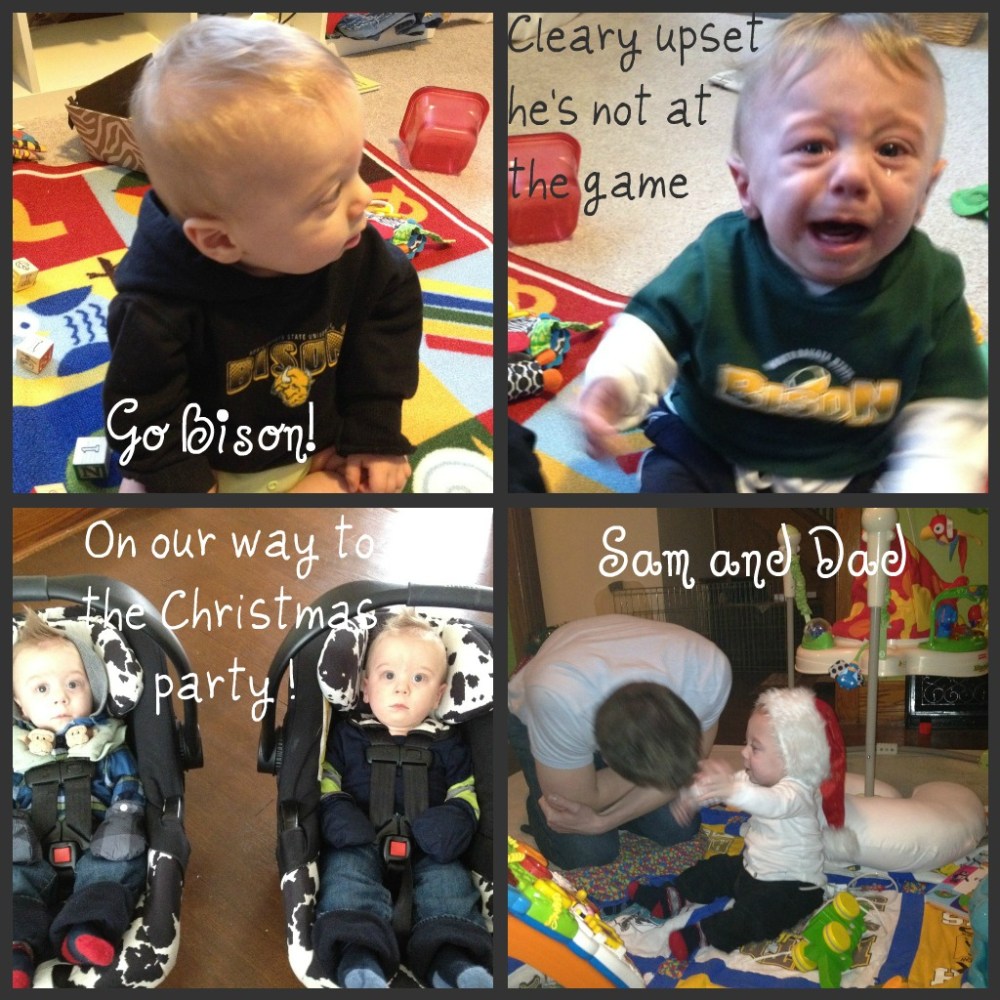 Such cute pictures, Trish! Looks like they both enjoyed their visit with Santa and Mrs. Claus. Such happy little boys-with the exception of not being able to watch those Bison and Mommy trying to put that cute Santa hat on. What a fun holiday you will have with these two precious little boys!