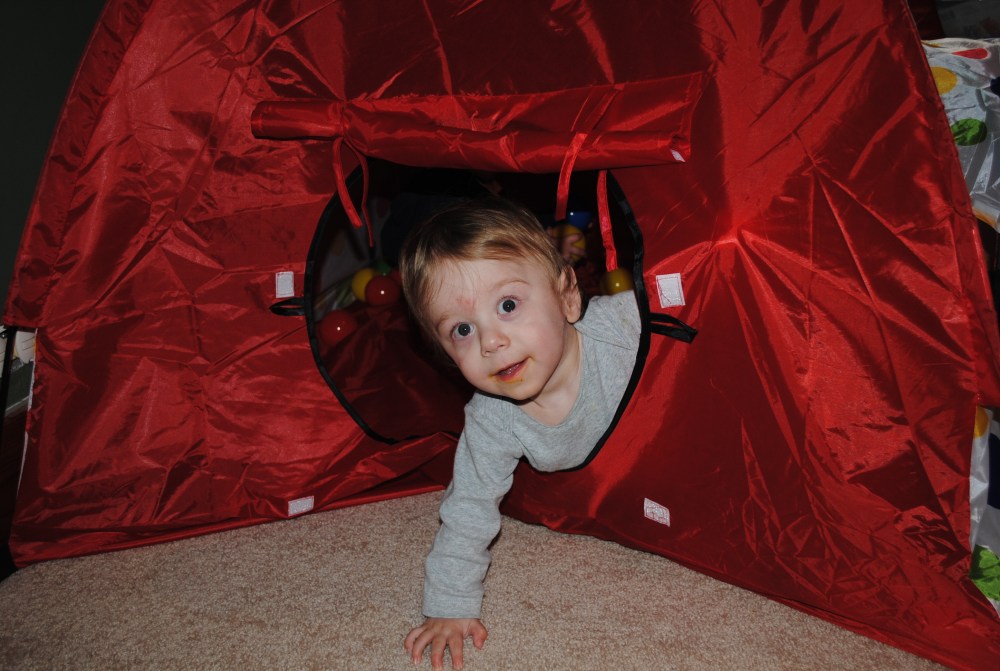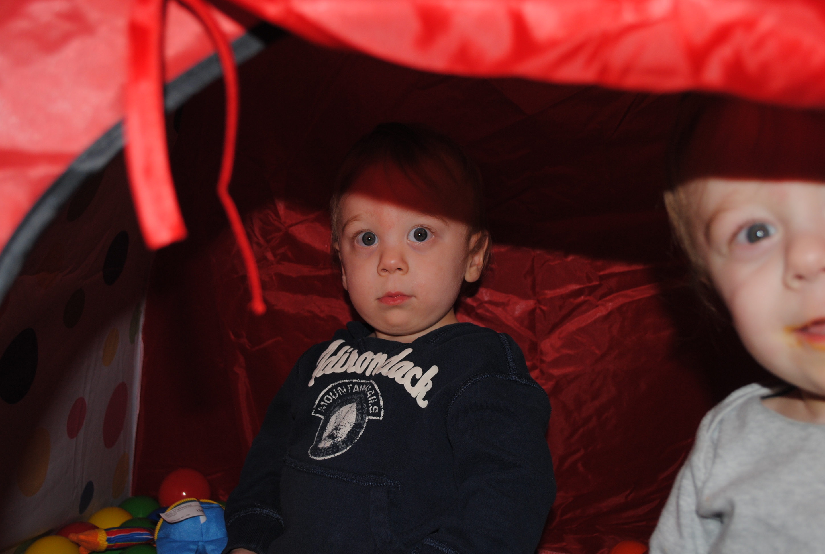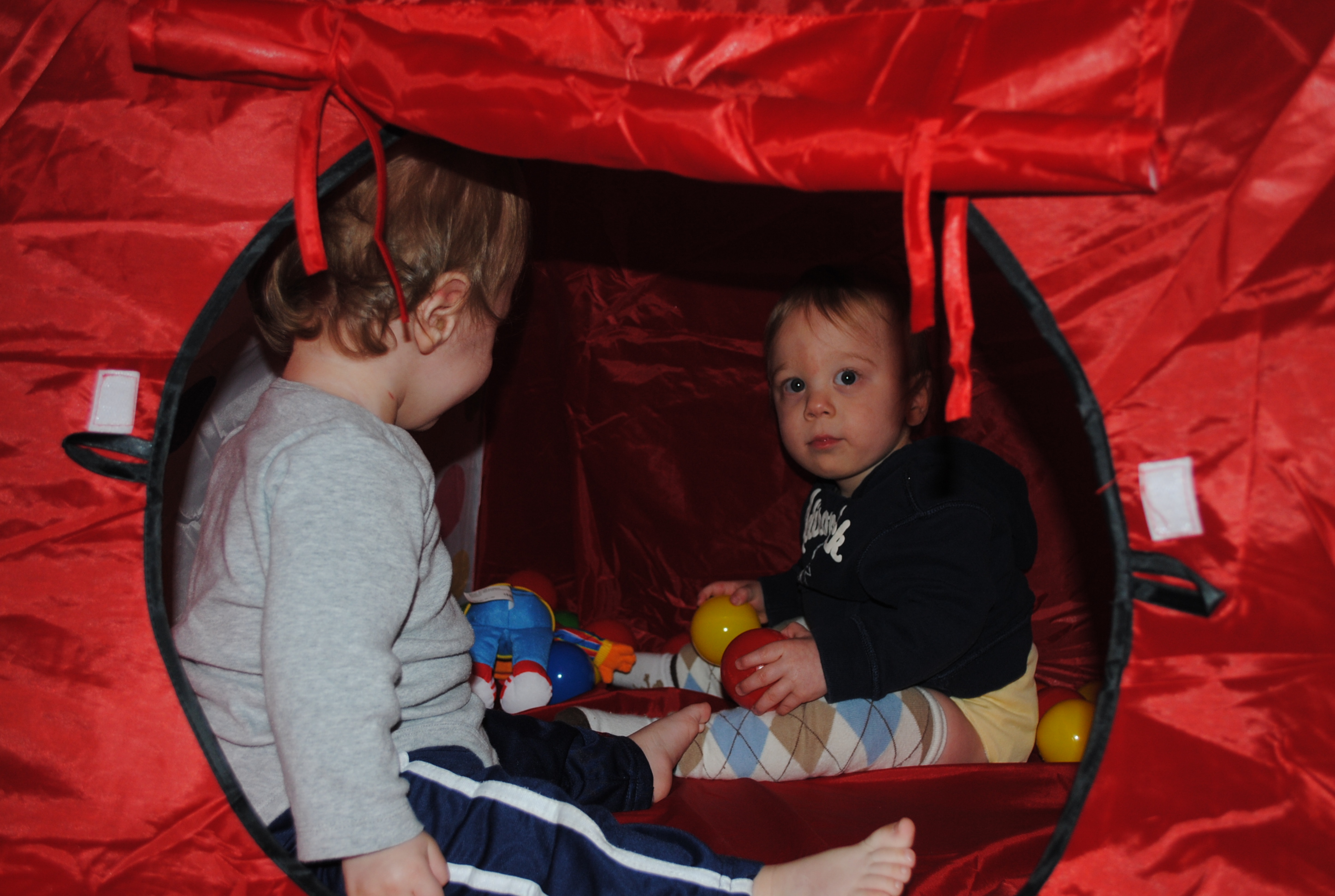 Easter this year was quiet and relaxing. I’m still stuffed from brunch yesterday! My mom arrived Friday afternoon and commenced spoiling the boys immediately. I absolutely love that Jack is a complete horror for Adam and me when changing diapers, and yet for my mom was a complete angel (at first). The boys know how to play the crowd, that’s for sure 😉 They enjoyed playing in their ball pit and tunnel and showing off: