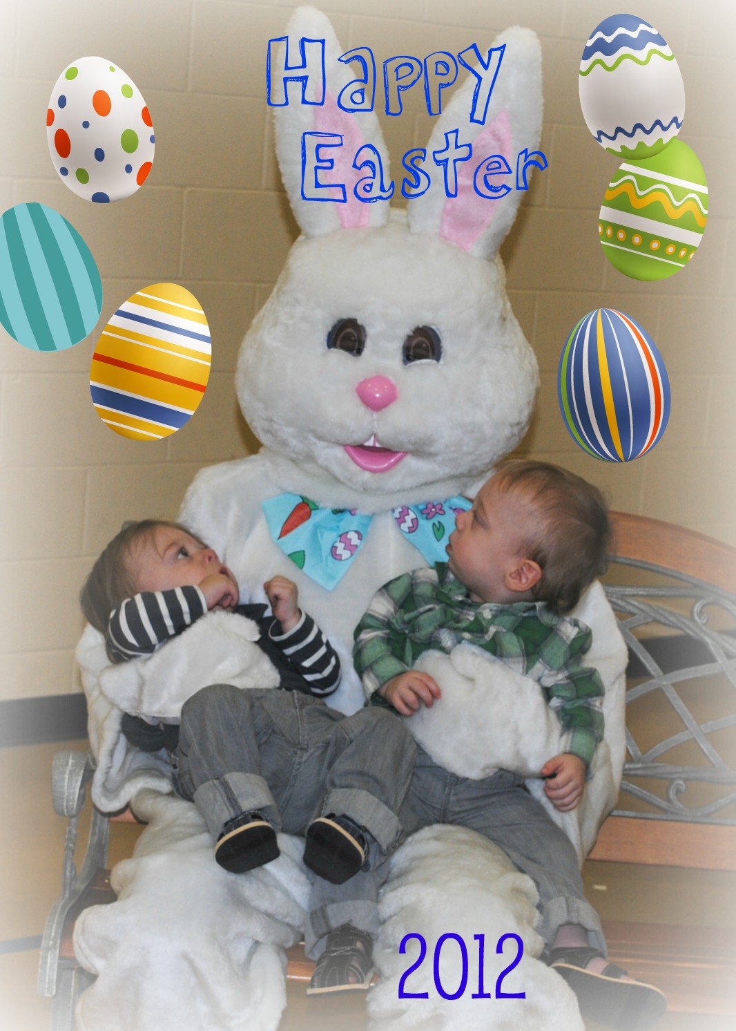 Saturday morning the whole crew (Adam managed a day off!) headed to an Easter Egg Hunt put on by the Omaha Parents of Multiples Club. I’m going to say the boys might have a little more fun next year… But they sure looked cute!