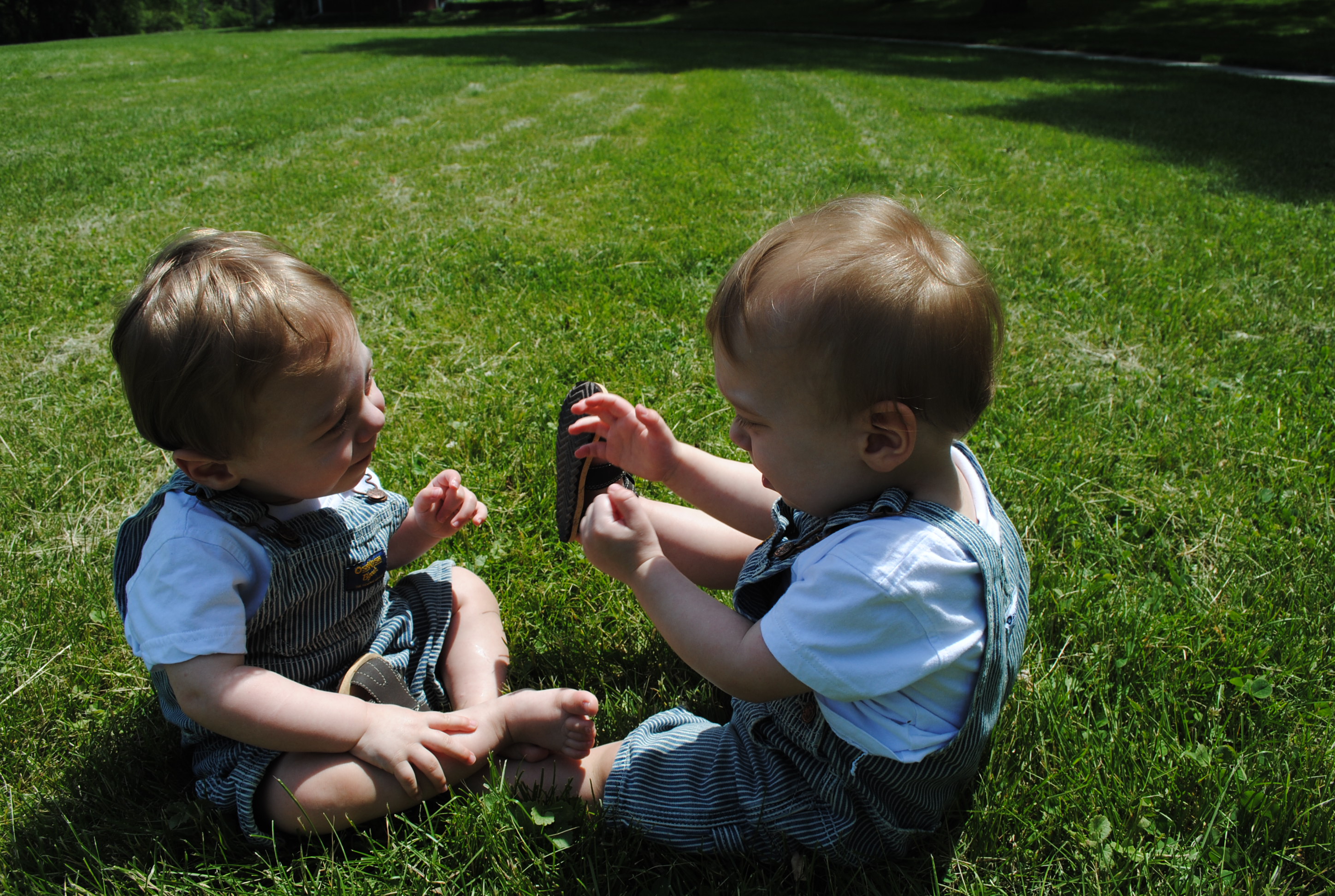 A few days ago we went to the park, and because neither Sam nor Jack was into the swings (weird), I decided to throw them in the grass for an impromptu photo shoot. That didn’t go too well either. Why you ask? Well… Sam has a double ear infection (AGAIN), and they BOTH have hand, foot and mouth– considering we rarely go anywhere and they’re not in daycare, I was not too happy about this! Fevers, crying, not wanting to eat… the last 2 days were kind of terrible. Luckily, they are back to normal today, minus a few rash areas.