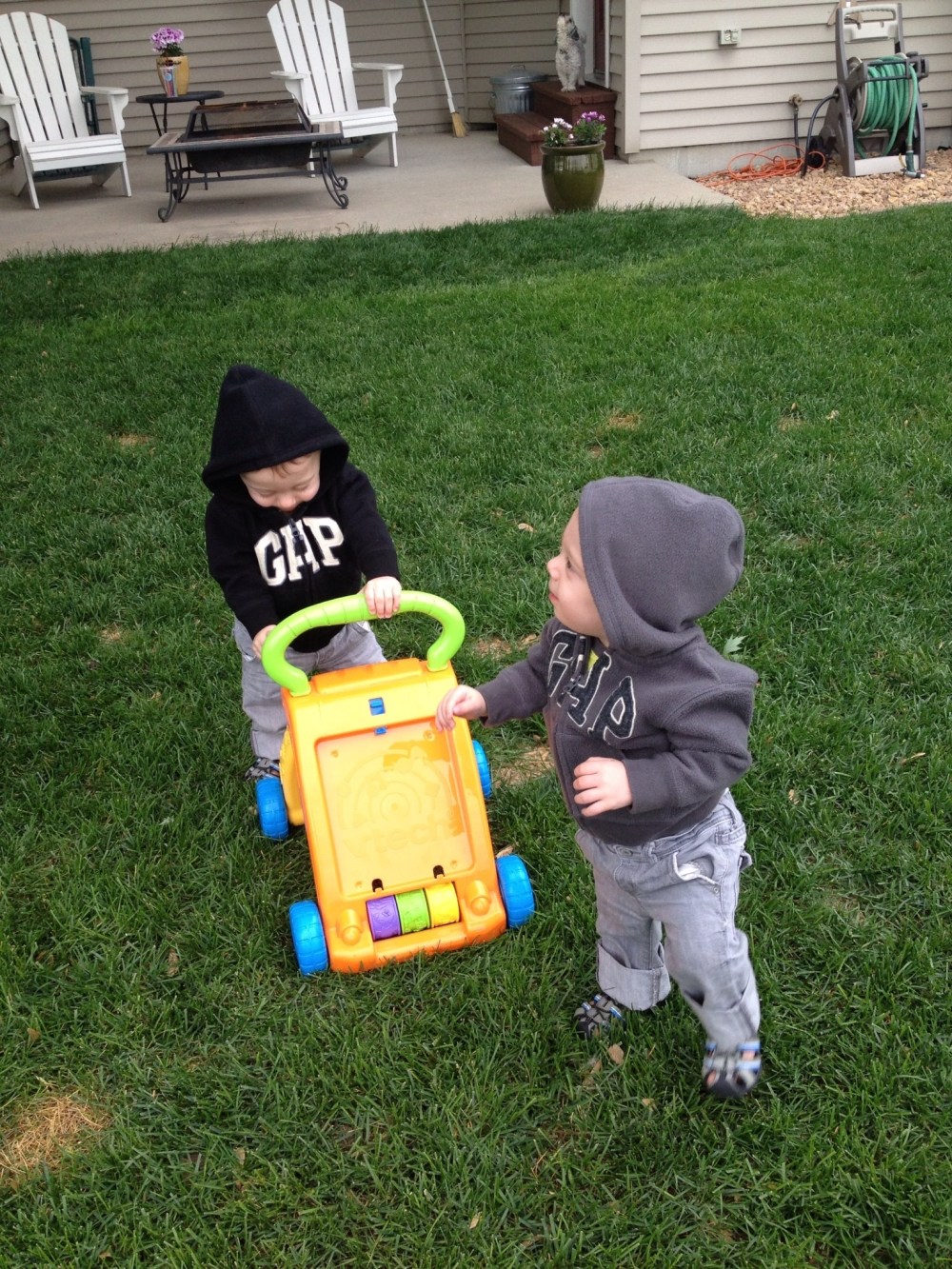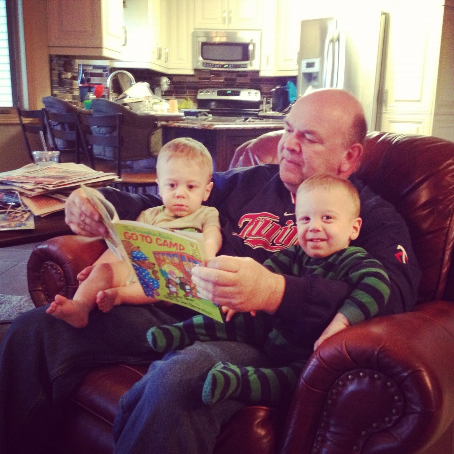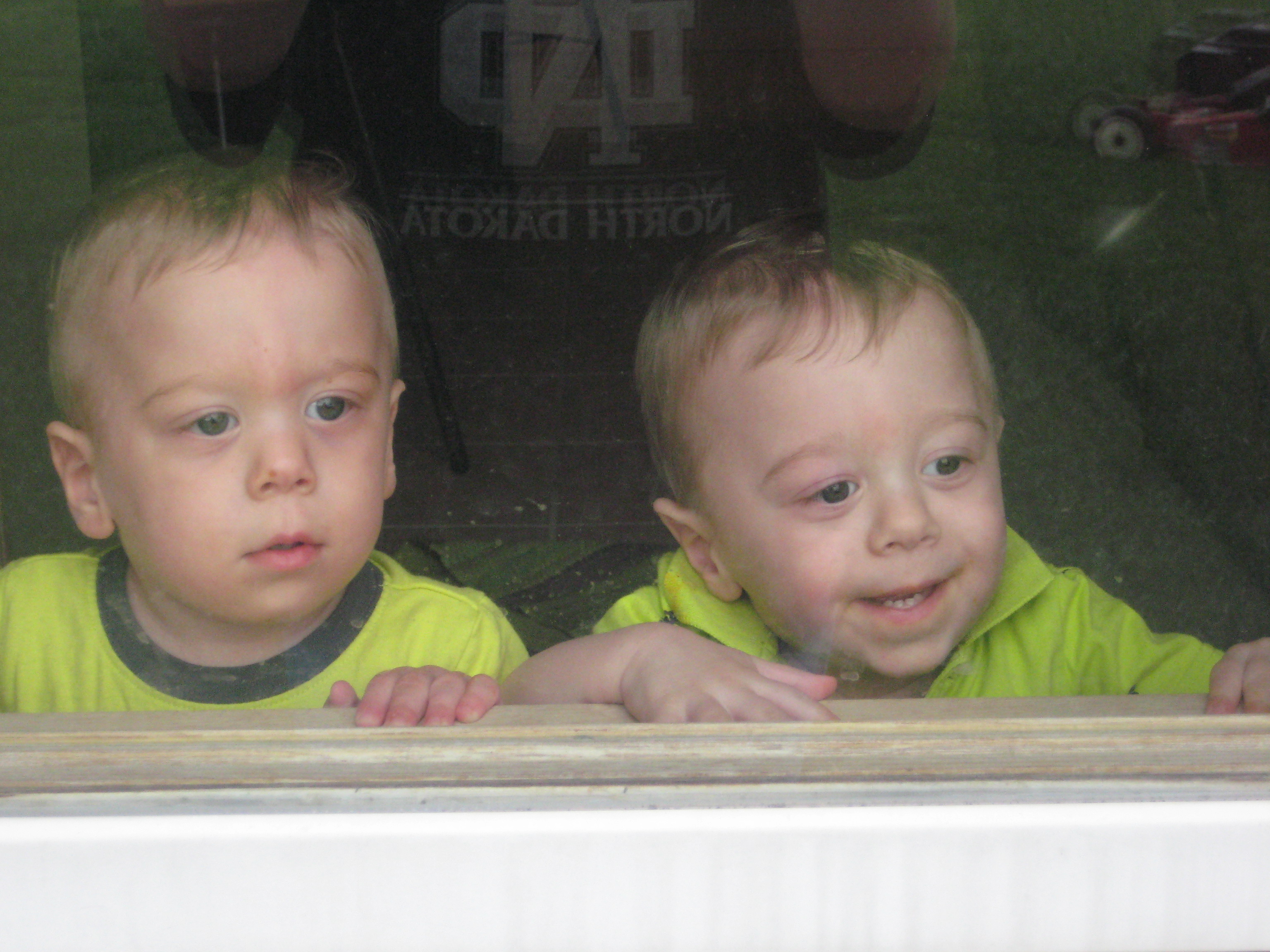 During our time in Fargo, the boys got major haircuts from Auntie K. They look like little men now! Both were troopers… The trick was to keep Jack fed at all times, and Sam entertained at all times. Now they bear an even more uncanny resemblance to Adam!