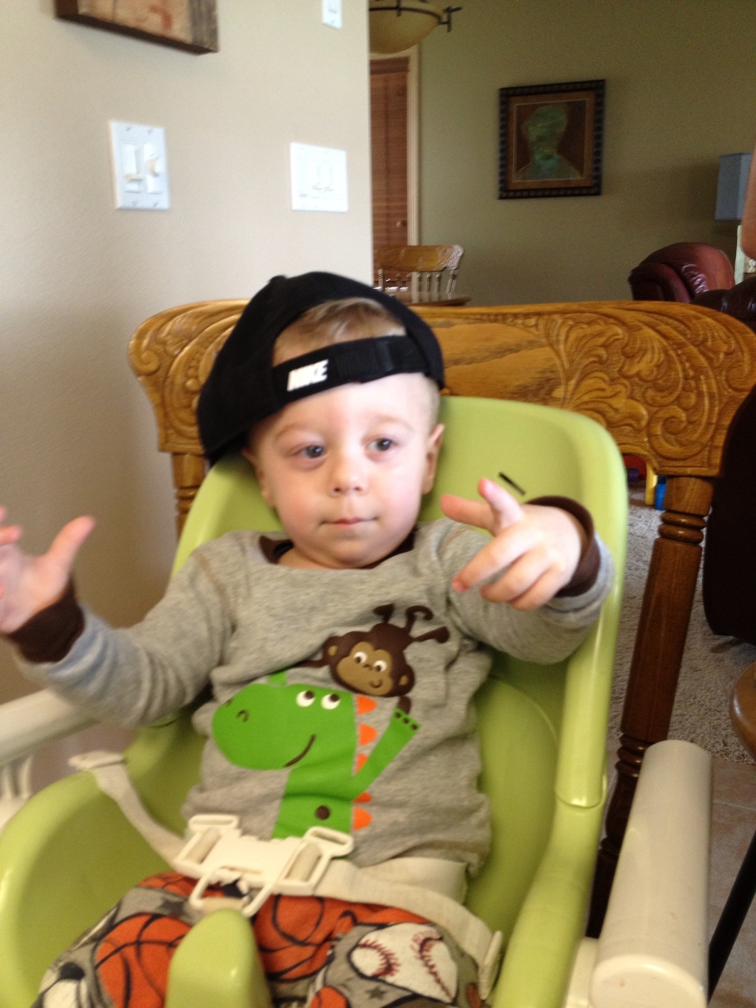 Sam says “Baby” all the time! Cutest thing ever. He has no idea WHY he’s saying it, but will say it when we ask him to!
