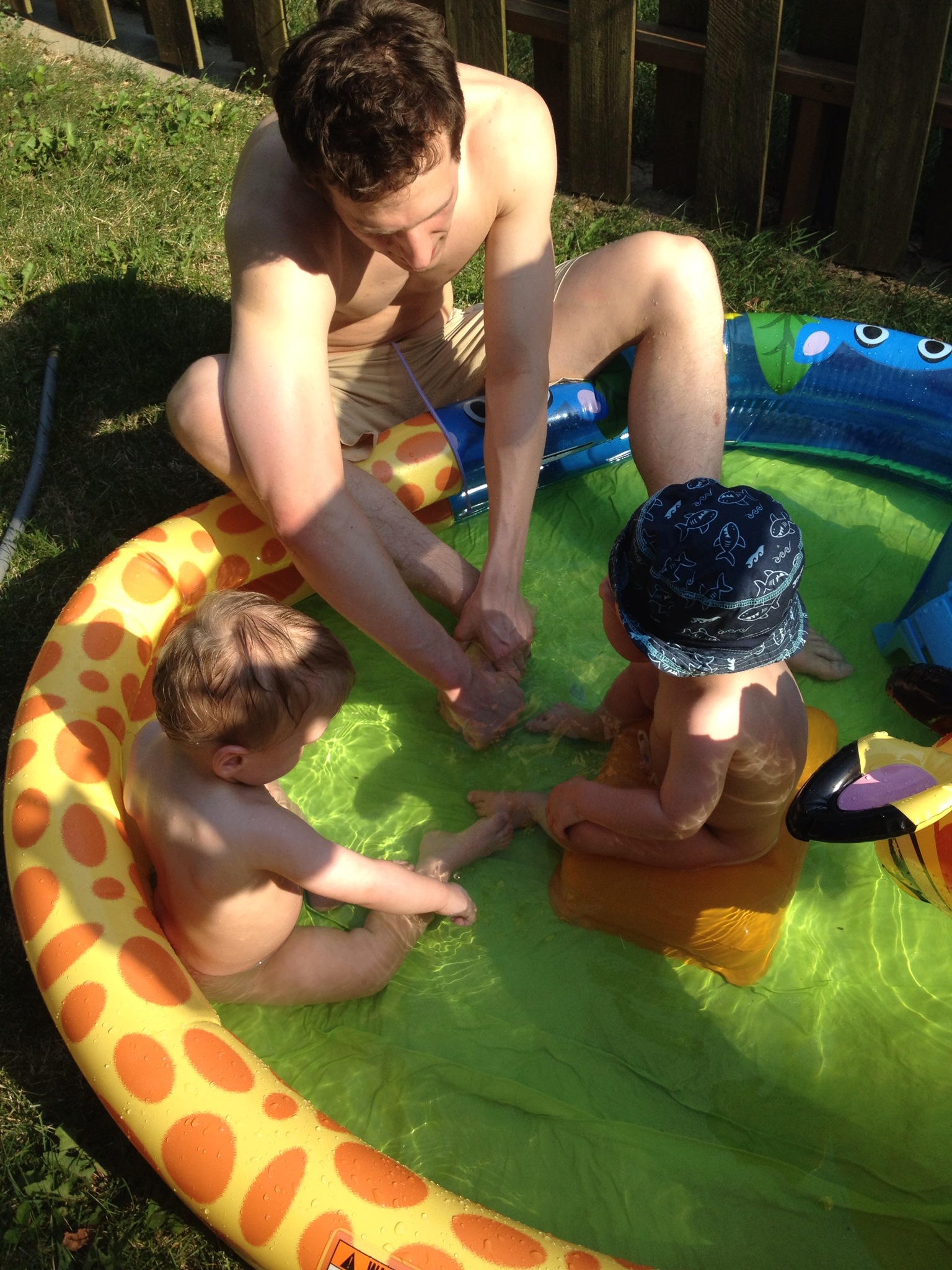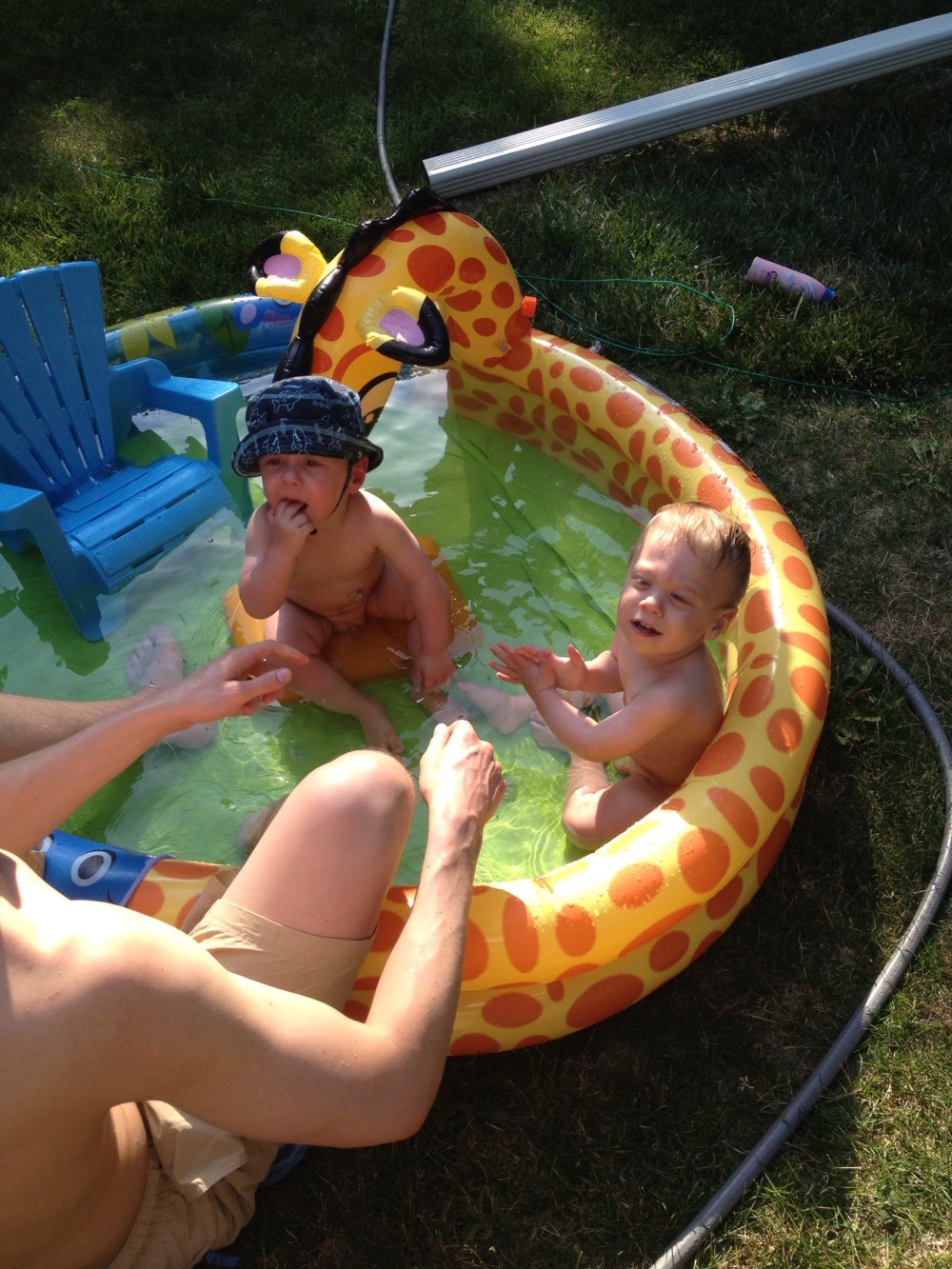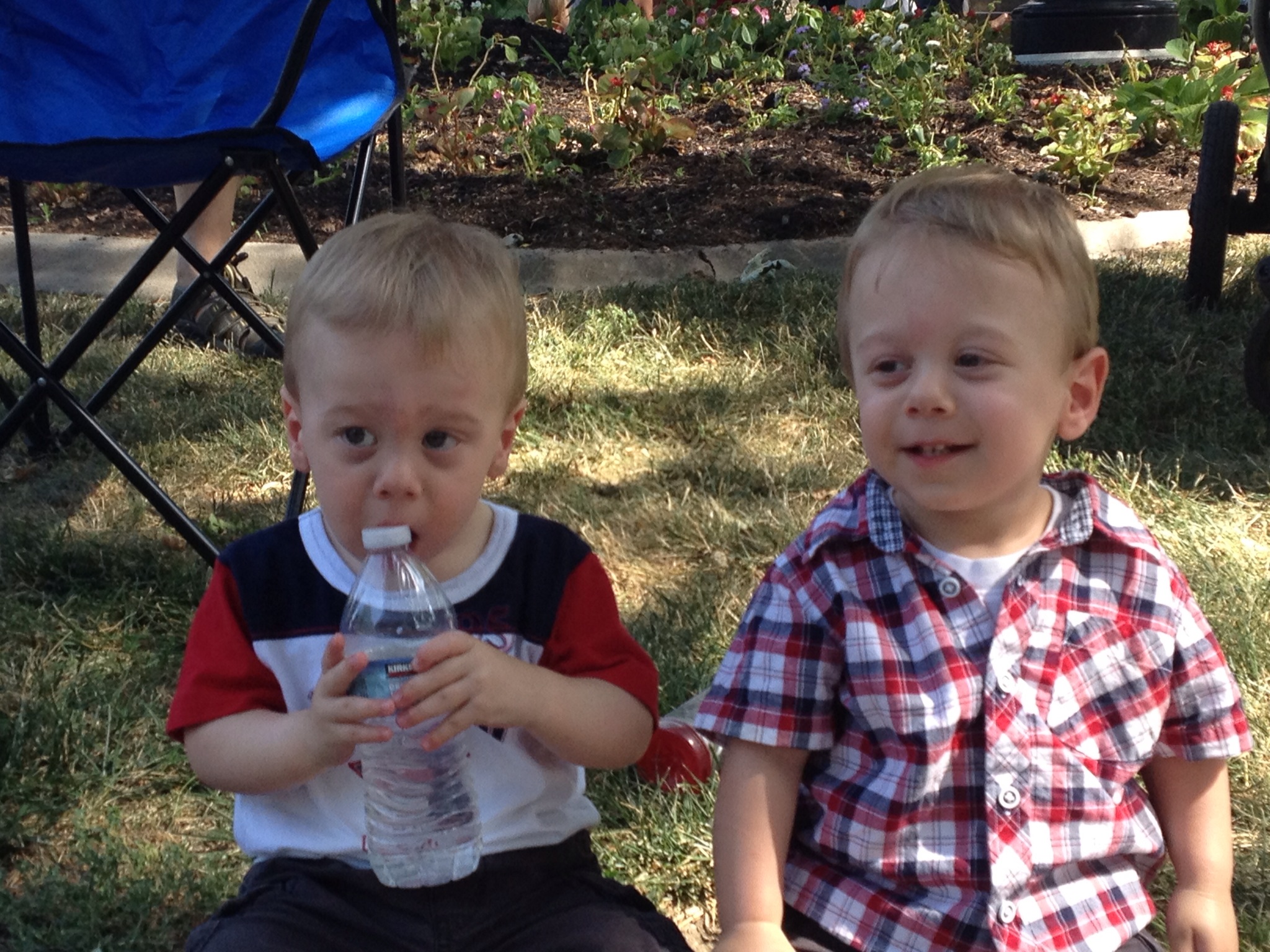 Here are some pics of our first {fun} July 4th (last year Sam was recovering from surgery #6)… We had a great morning at the local Field Club parade and then came home to have lunch and let the boys nap. Nap they did! When they woke up, it was time to cool off in the pool and watch Daddy grill.