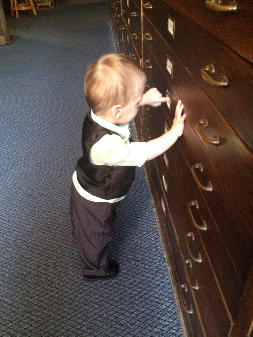 Last weekend Adam and the boys were in a wedding for our friends Zach and Angela. It was a beautiful wedding and we had a great time! It was so much fun to see old friends, and finally meet some of the people Adam (and Zach and Angela) work with. The boys were ring bearers–and adorable! My prediction came true– Jack refused to walk down the aisle, and Sam “walked” with Adam before he got distracted and had to be picked up. But they were both well-behaved, and extremely handsome. Jack and I excused ourselves after about 10 minute of the ceremony– he wasn’t naughty, just very talkative. A Catholic wedding has a lot of quiet moments, so I thought it best to head to the back rooms and just let him burn off some steam π Β All of the photos I tried to take of the boys together were a disaster– Adam’s friend Aru got some good ones on his camera, so I’ll make Adam get those for us π The wedding photographer was fantastic with the boys, and I know we’ll have a ton of good ones to choose from when those are available! I told Zach and Angela they better be okay being on our Christmas card this year, because the boys were smiling up a storm!