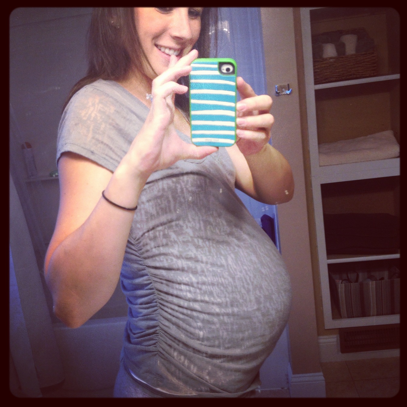 Here’s a bump picture… I took it this morning so I’m 32.5 weeks. AHH! I’m literally Googling something every night before I go to bed as I think of it… Last night? It was How often do babies eat? I have TWO children. You would think I remember this answer. But here’s the thing– Jack slept through the night when we got home, so I had to wake him up, and Sam we didn’t even have to wake up… we just tubed him. The answer was 2.5-3 hours. Umm… oh. So when does one sleep? Things will be a little different this time… which is a GOOD thing! I’m just nervous, but if I can keep two preemie kids alive for almost two years… we’ll be okay 🙂