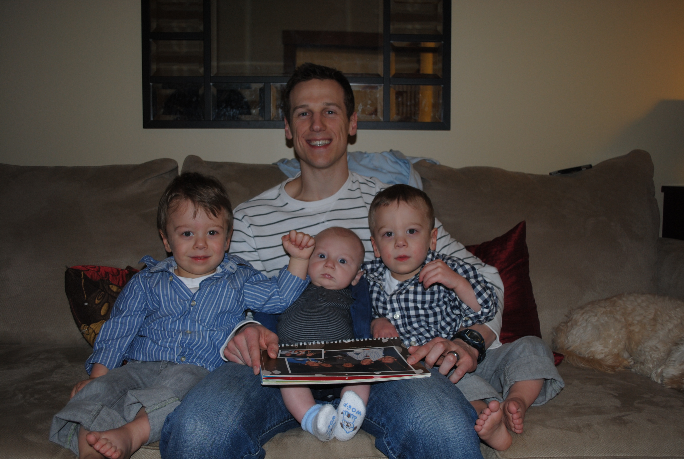 We have had a lot of fun the past few weeks– two weekends ago my parents and Krysta took the twins and Adam and I enjoyed some Eli time. Having just 1 kid to take care of, that is “normal,” was incredible! Incredibly fun, incredibly easy, and almost incredibly relaxing. He did take that time to go through a growth spurt, so he was attached to me about every 2 hours during the day. Thank goodness, he still slept through the night! Sam and Jack had a great time with Auntie and Grandma and Grandpa. Jack came back basically knowing how to read. 🙂