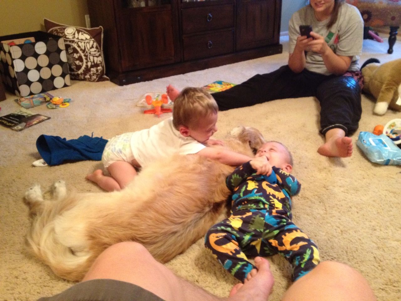 Adam, the kids and I were so lucky to see her right before she passed. It’s funny how timing works out. Sam and her had a blast playing and chasing each other. She cuddled with a sick Jack and sniffed out baby Eli.