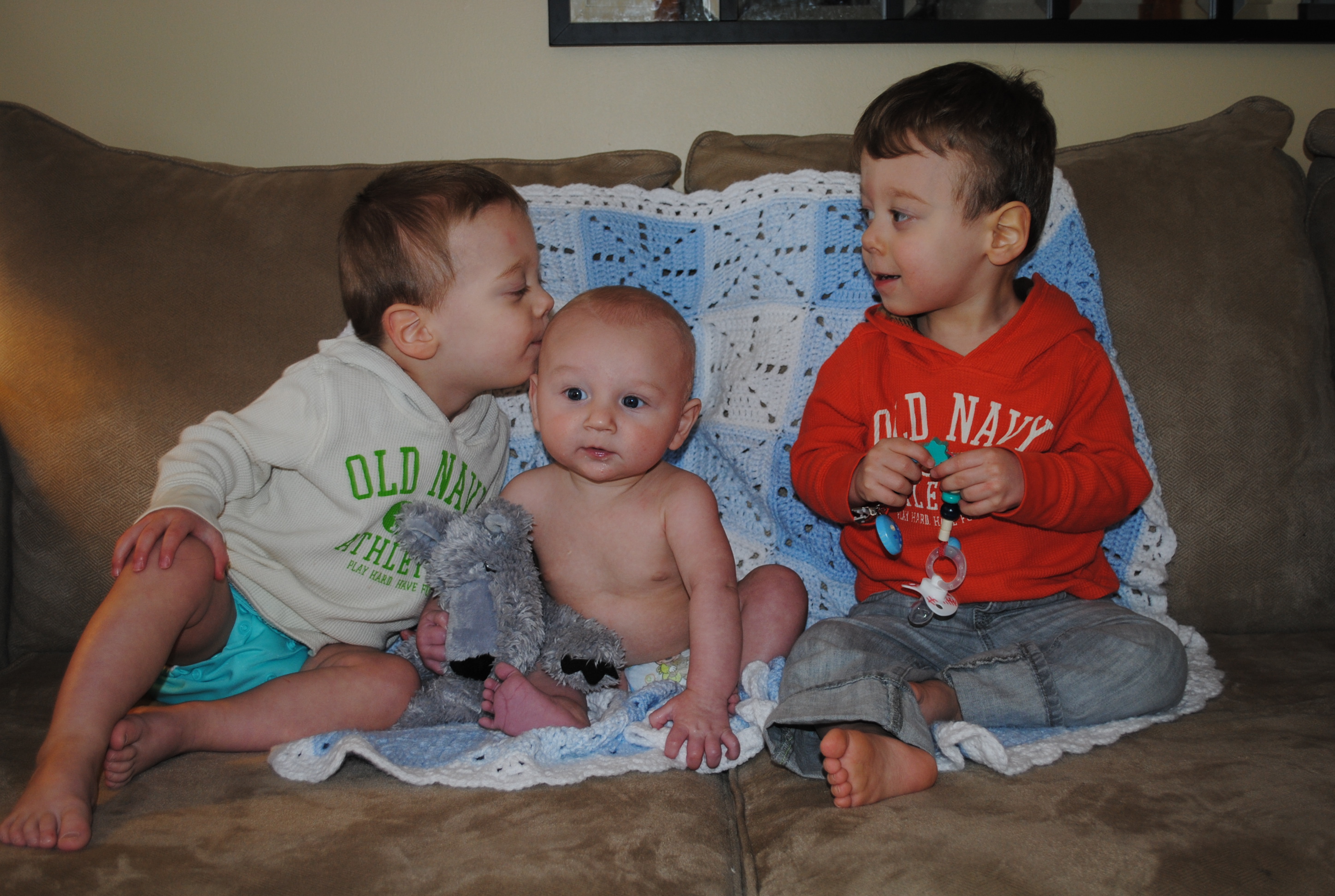 –but he IS a great sleeper at night! We put him down with the twins at 8:00pm and do a “dream feed” at 10:15pm (feed him without waking him up)