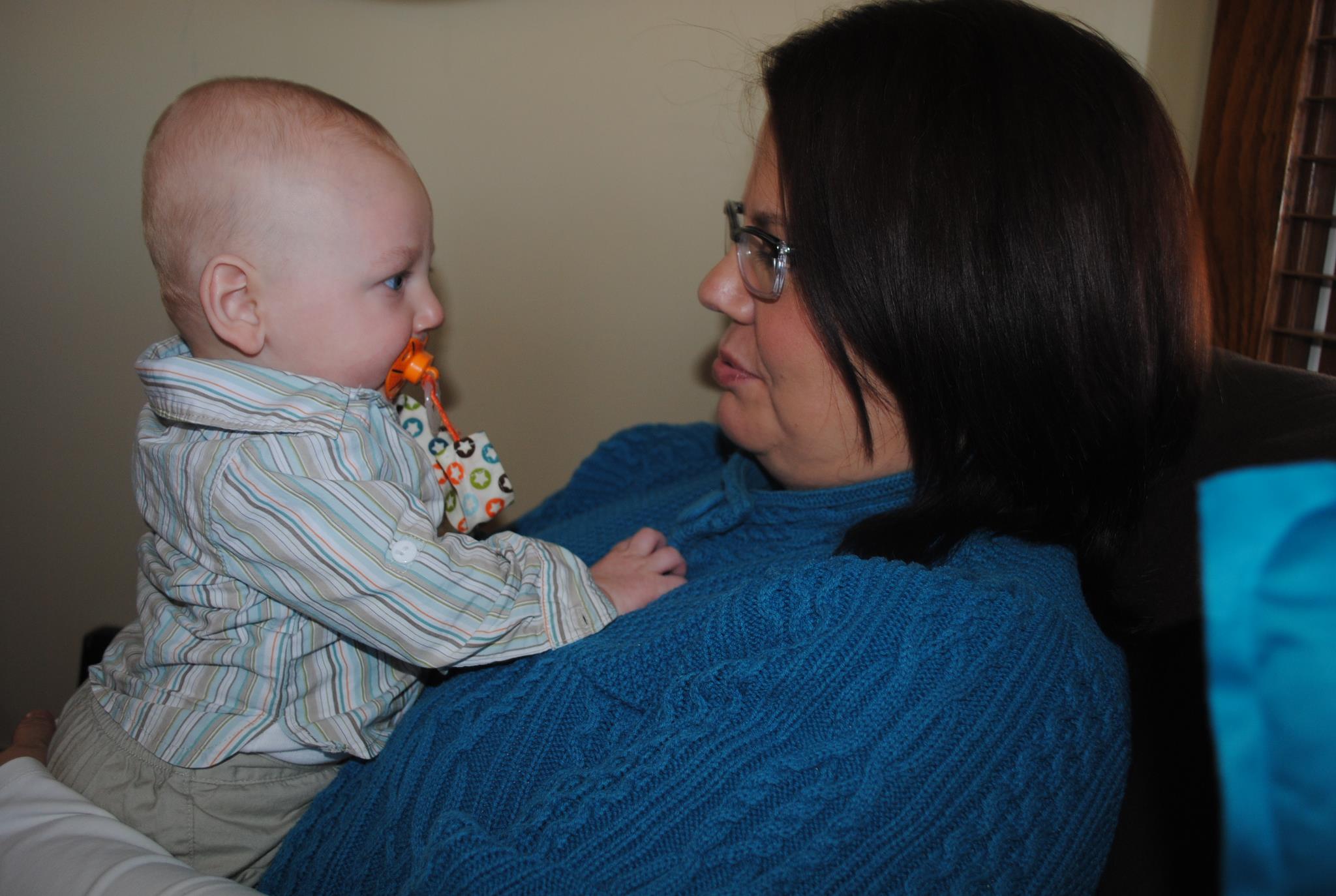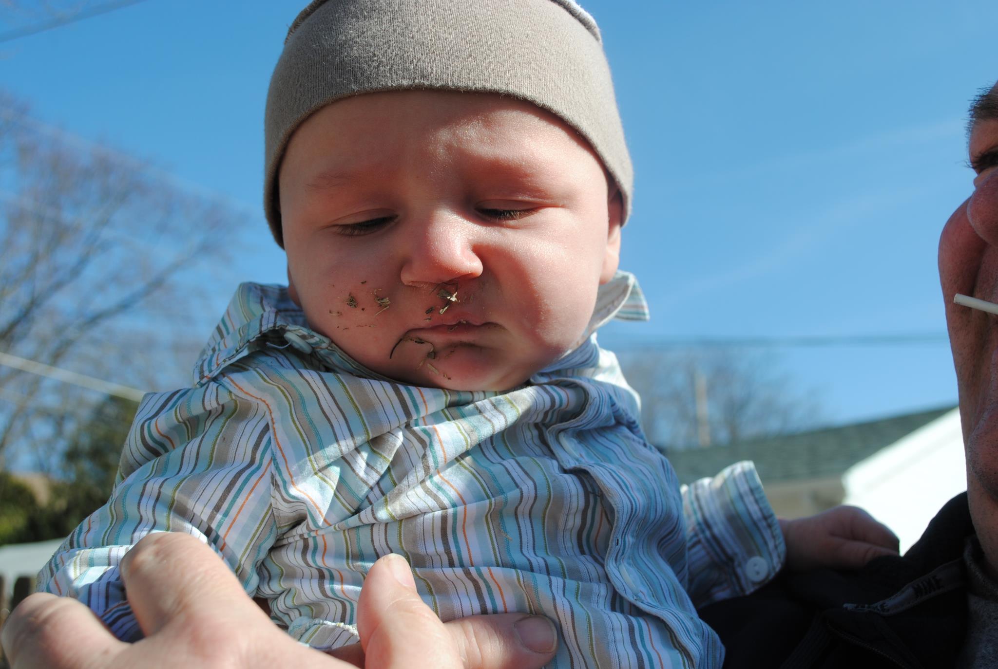 The Saturday before Easter Adam had to take Sam to the E.R. During nap (he gets tubed water), his tubing had twisted around a stuffed animal so many times that it pulled out his tube– he never cried or yelled, so we had no idea. Adam went up there and realized his bed was soaked with water, and then saw the button was out! I change it bi-monthly, so we know how to put it back in– however, it closes up within one hour, so if you don’t do it in that window, you need to get to the E.R. (Adam could do it too, but he didn’t have the right tools obviously). So 2 hours and a lot of screaming later (no local anesthesia 😦 ), Sam was back and good as new!