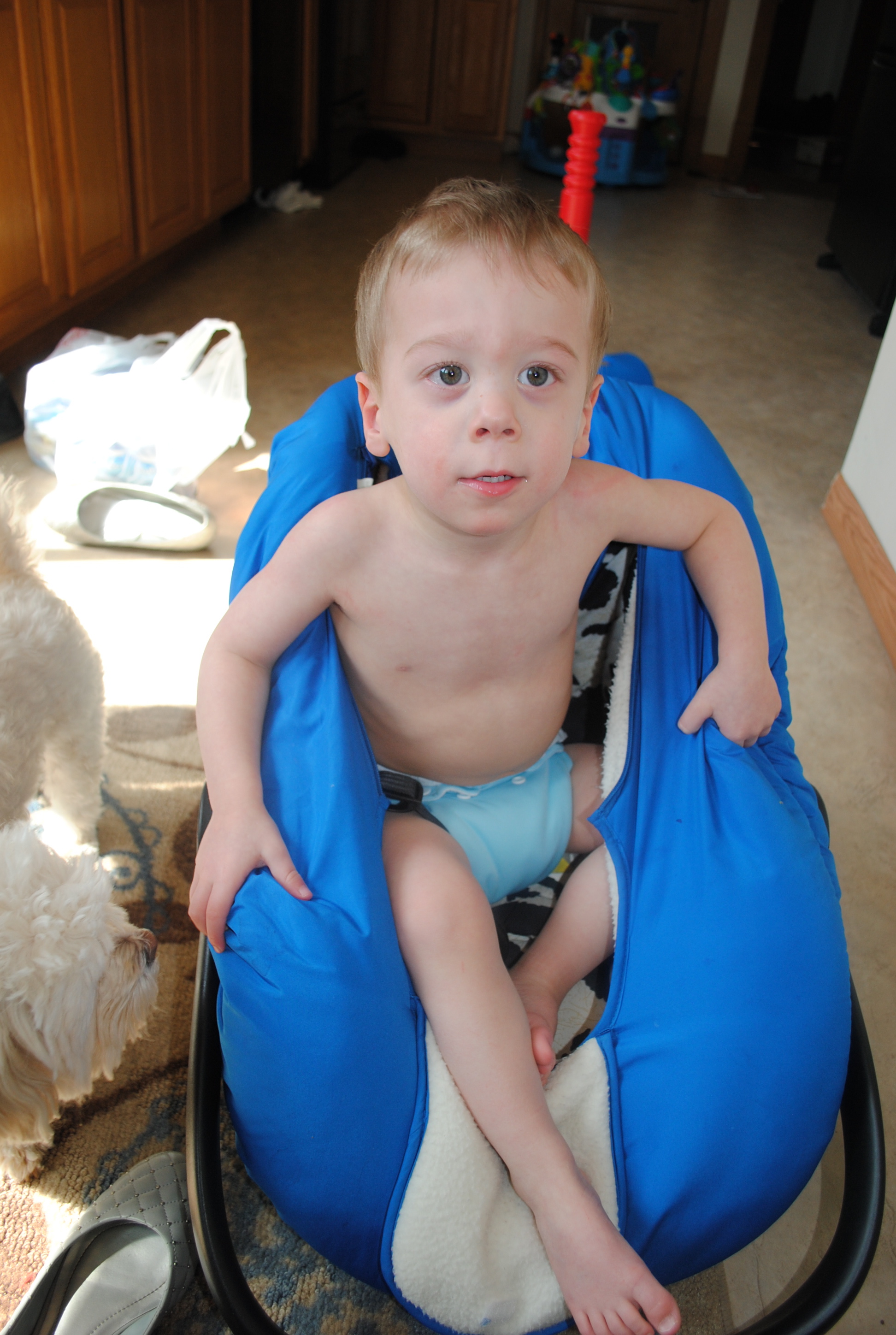Heard Jack screaming… Run in to find him in Eli’s carseat (all smiles when he saw the camera!)