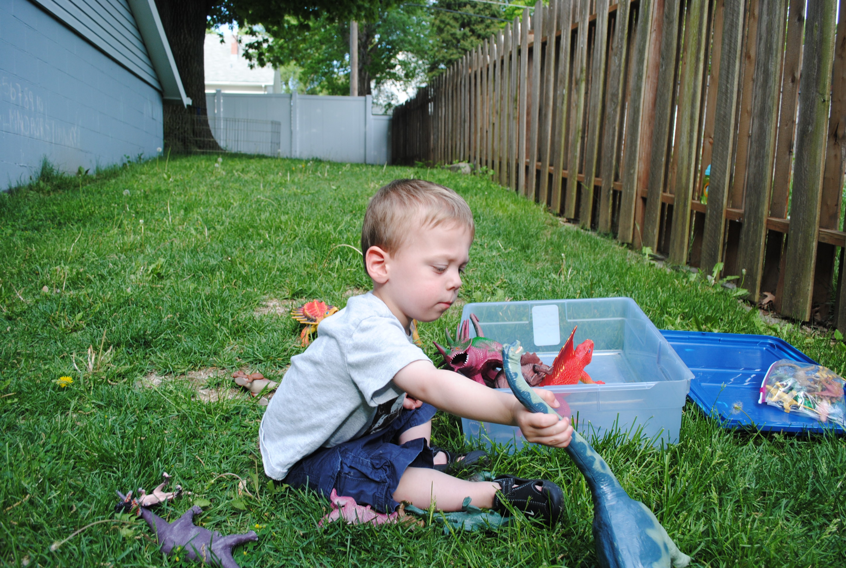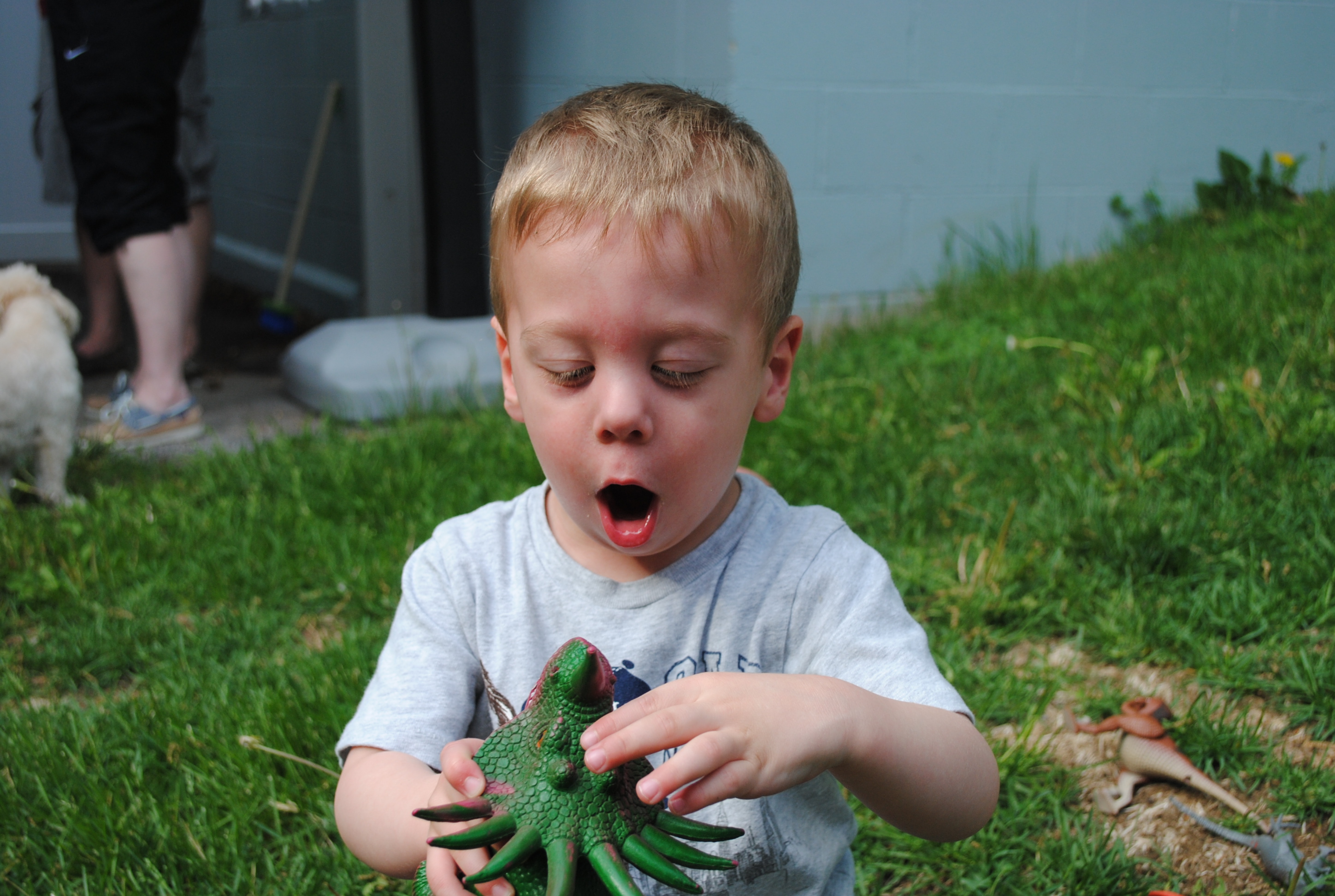 As of late, the twins have become obsessed with all things dinosaur. Adam’s mom brought down his old dino’s over Memorial Day weekend and the boys went nuts. So much fun!