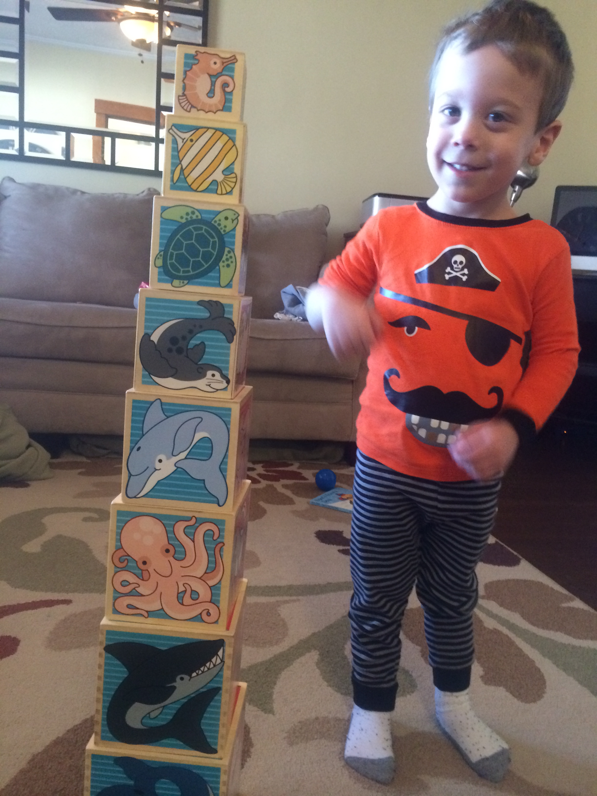 Sam’s New Year Resolution: Get potty trained. Eat 50% of his calories by mouth. We are *attempting* to potty train this weekend. I will blog about that at a later date. Here’s what you need to know: Jack lives to please, and potty training him was fairly easy. Sam lives to please no one but himself, is the most stubborn kid on the face of the earth, and would rather hold his bladder for hours than sit on a toilet and just pee. Here goes nothing…!