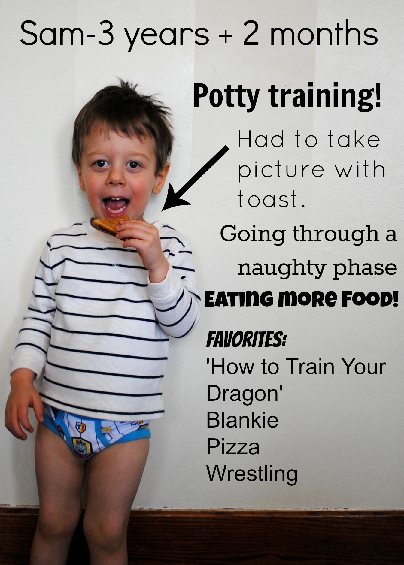 Sam, your potty training stories will be a blog post itself. Your stubbornness, hot-headedness, and all around “Sam-isms” have caused a lot of stress lately. Right now you are learning and processing so much, and I think you’re a little overwhelmed. You’ve just become too good at things! You’re eating more (even at school), going down slides, talking more and more, and now we threw potty training into the mix– your charm can win anyone over though, and 50% of the time you act out I have to walk away laughing or bury my face in my hands so you don’t see me laughing.