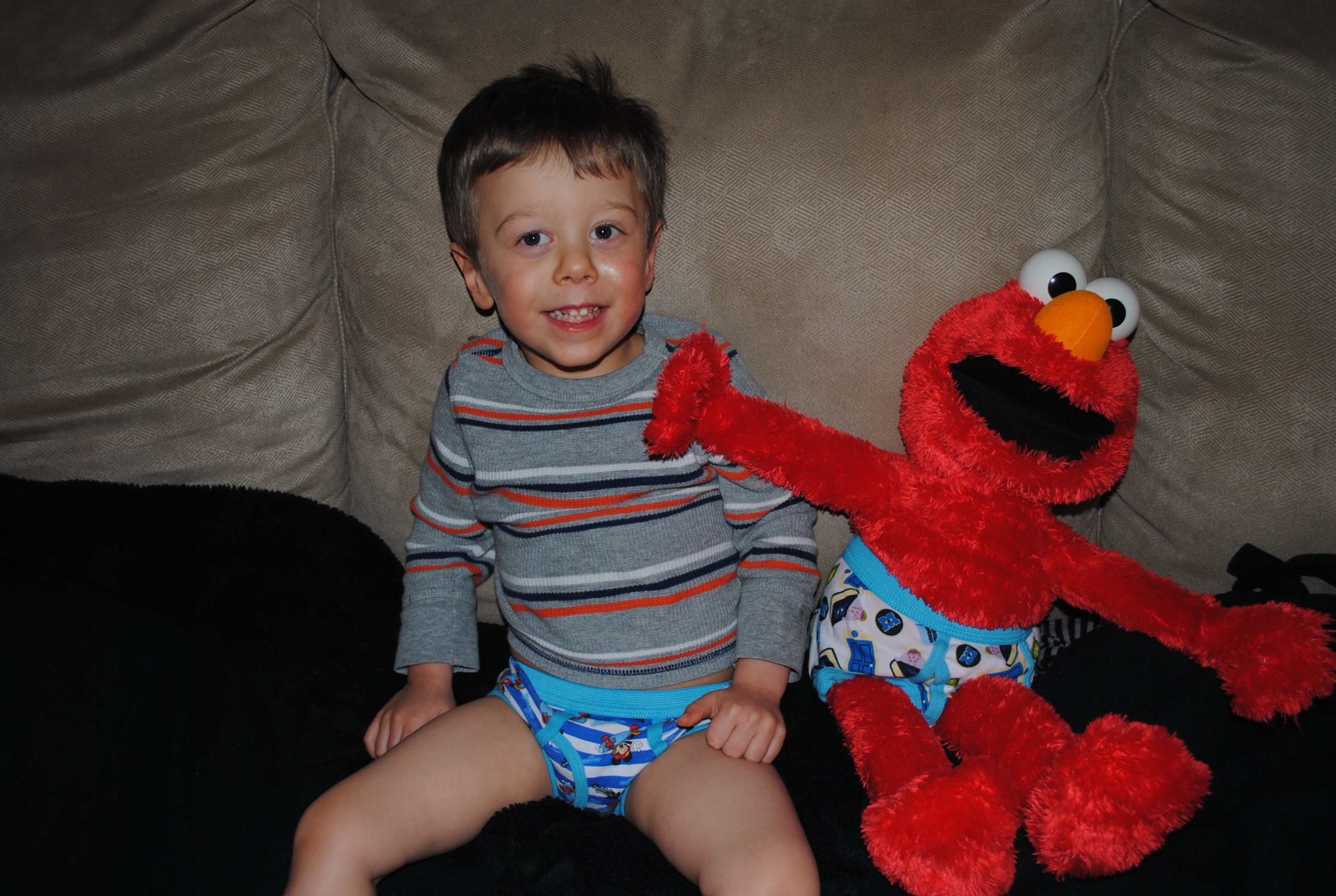 Here’s where we’re at now, a week later: He is getting better about telling us he has to go potty. We’ve gotten the underwear off, but either Adam or I are in charge of “holding it down.” <– potty training boys sucks. He’s still scared when he pees, but doesn’t cry anymore. Every time he goes potty he is so, so excited. At home, we wear only underwear (diapers at nap and bedtime). In public we still wear diapers. Sam is an incredibly hydrated boy (yay for tube feedings…), and the max he can hold his bladder is about two hours. Also, I can’t imagine his teachers dealing with this at school. Obviously this goes against any potty training method out there, but I highly doubt there is a potty training book called “Potty Train Your Tube Fed Child with Sensory Issues.”