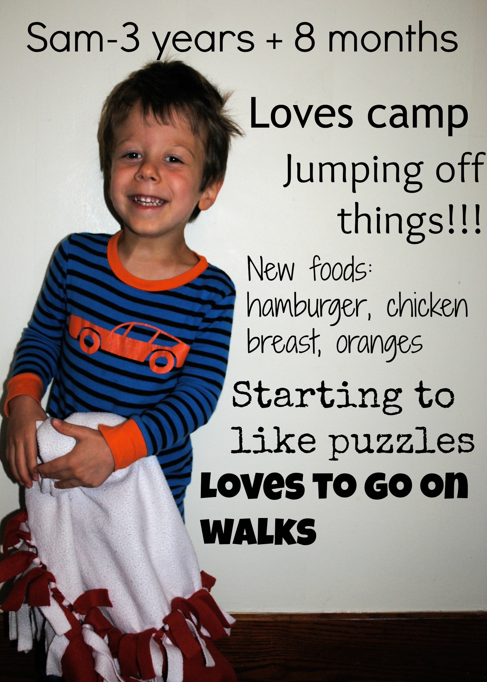 Biggest success in the past few months: Sam is FREE of pull-ups, including night time! So proud of him. Unfortunately, this also means he is waking up a little earlier than I’d like to use the bathroom, but it’s worth it 🙂
