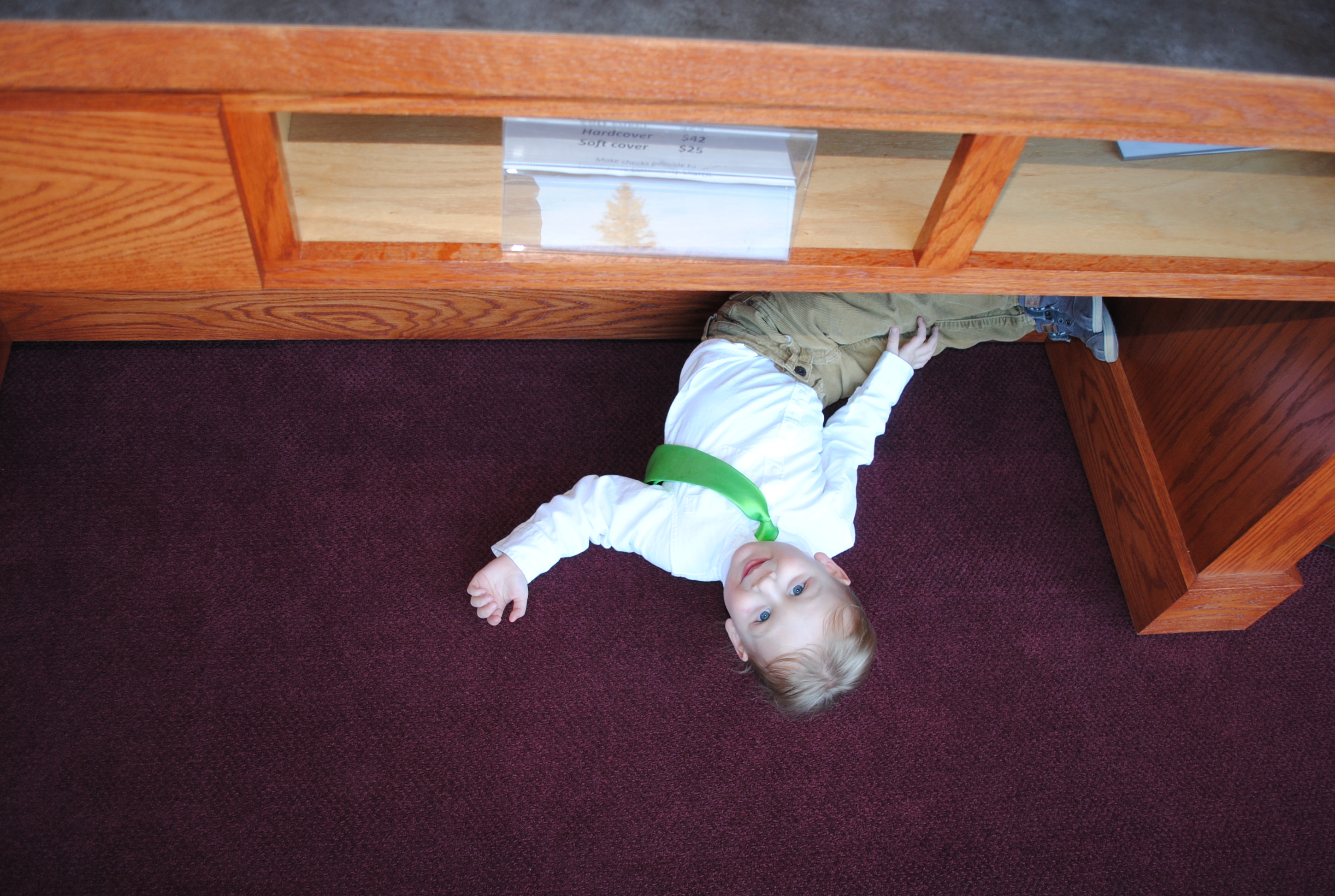 Of course Eli had to create a scene on stage– luckily, it was of the adorable sort 🙂 Adam and I stood closest to our Pastor and Eli ran around and around Adam’s legs almost the entire time. We made the entire church laugh and started the day off right!