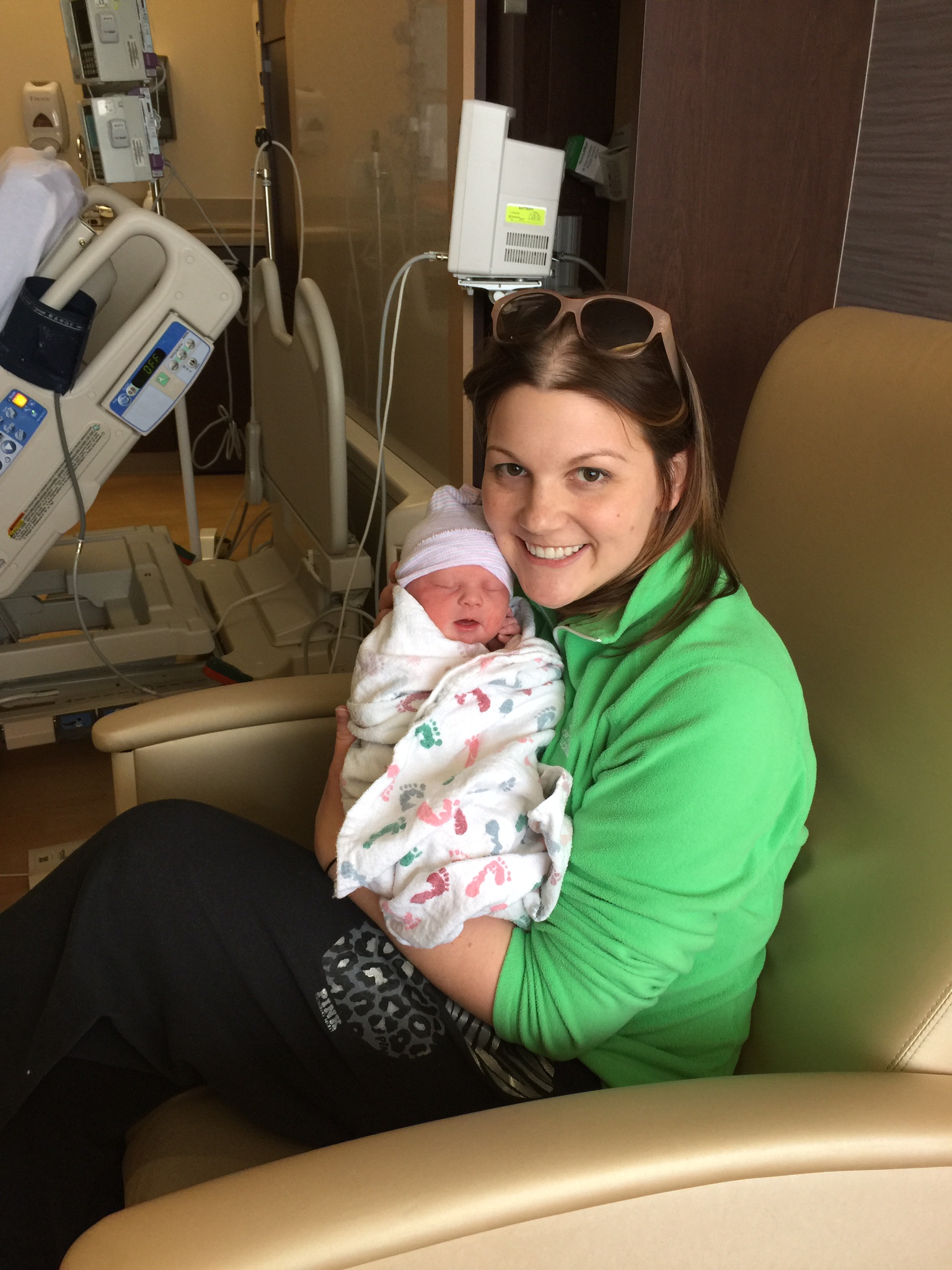 Claire’s due date was May 7, so she was early// born at 37w, 5days. I had been monitored throughout my pregnancy for various reasons, and while I was planning to have her early, no one was planning on April 21! Her amniotic fluid levels had dipped very low at my appointment on 4/20/15. My OBGYN, Dr. Evans (fantastic!), and I made the decision to deliver the next day. We had been doing bi-weekly NST’s and she had never “passed”: obviously, something was going on and she was better out than in. This was so similar to the circumstances surrounding the twins that it was making me nauseous, irritable, and beyond stressed. I just wanted her out, and to meet this little princess!