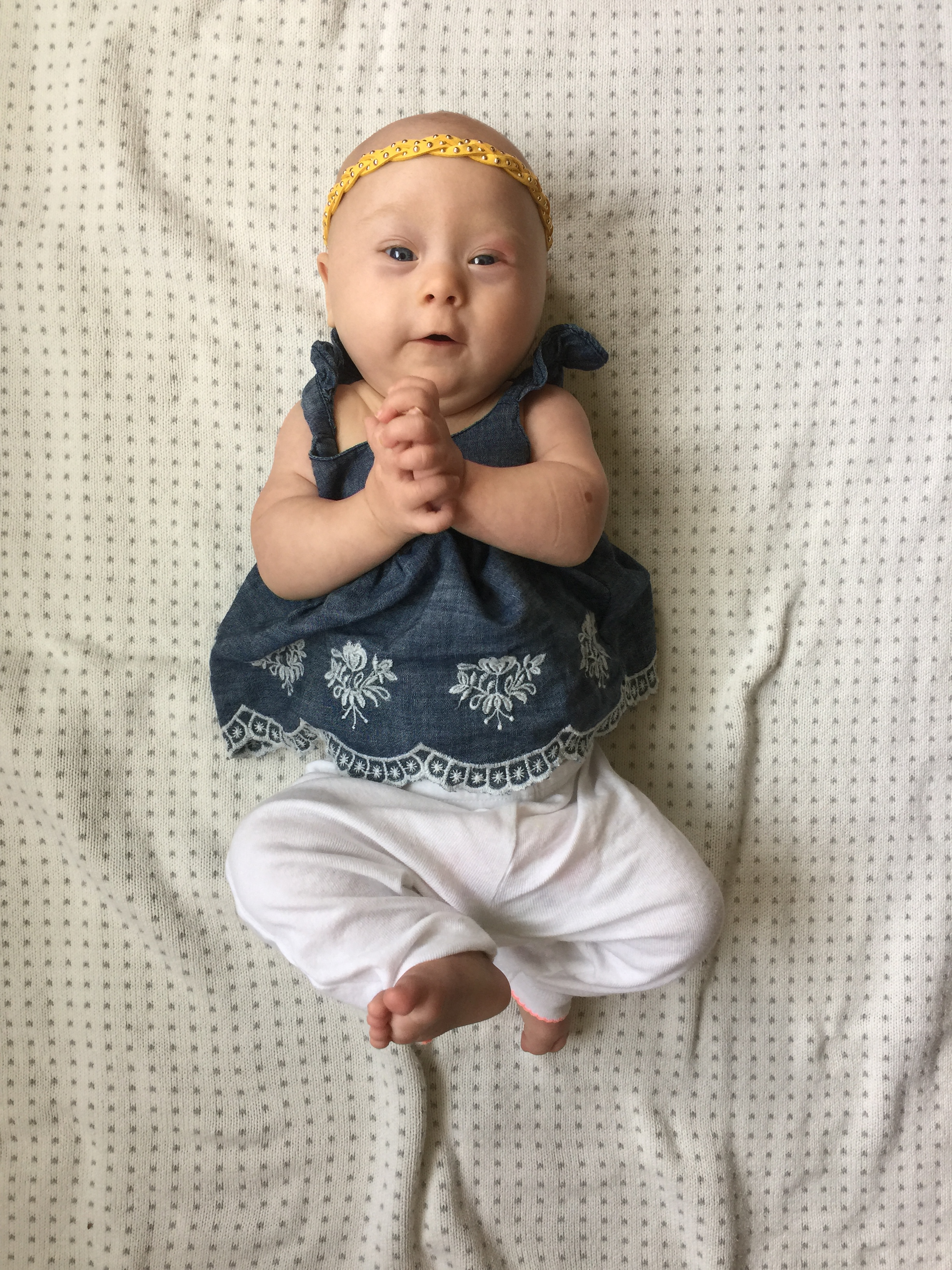 Claire is beautiful. We too are lucky grandparents of a beautiful little girl with Down’s, her name is Hope and she will always be our family’s little ray of Hope. This past Sunday Hope modeled in the Chicago NADS gala. They then chose to put her picture and my daughter and Hope’s sister Sarah on the channel 7 news that night. We are originally from Omaha and currently live in Chicago, I know my daughter Erin who is an advocate for DS would love to see your posts. She too has been blogging all month on her facebook account, under Erin Komacki. I know you are blessed just like Erin, her husband Paul. big sis Sarah and the entire Riley Family is. Best wishes.