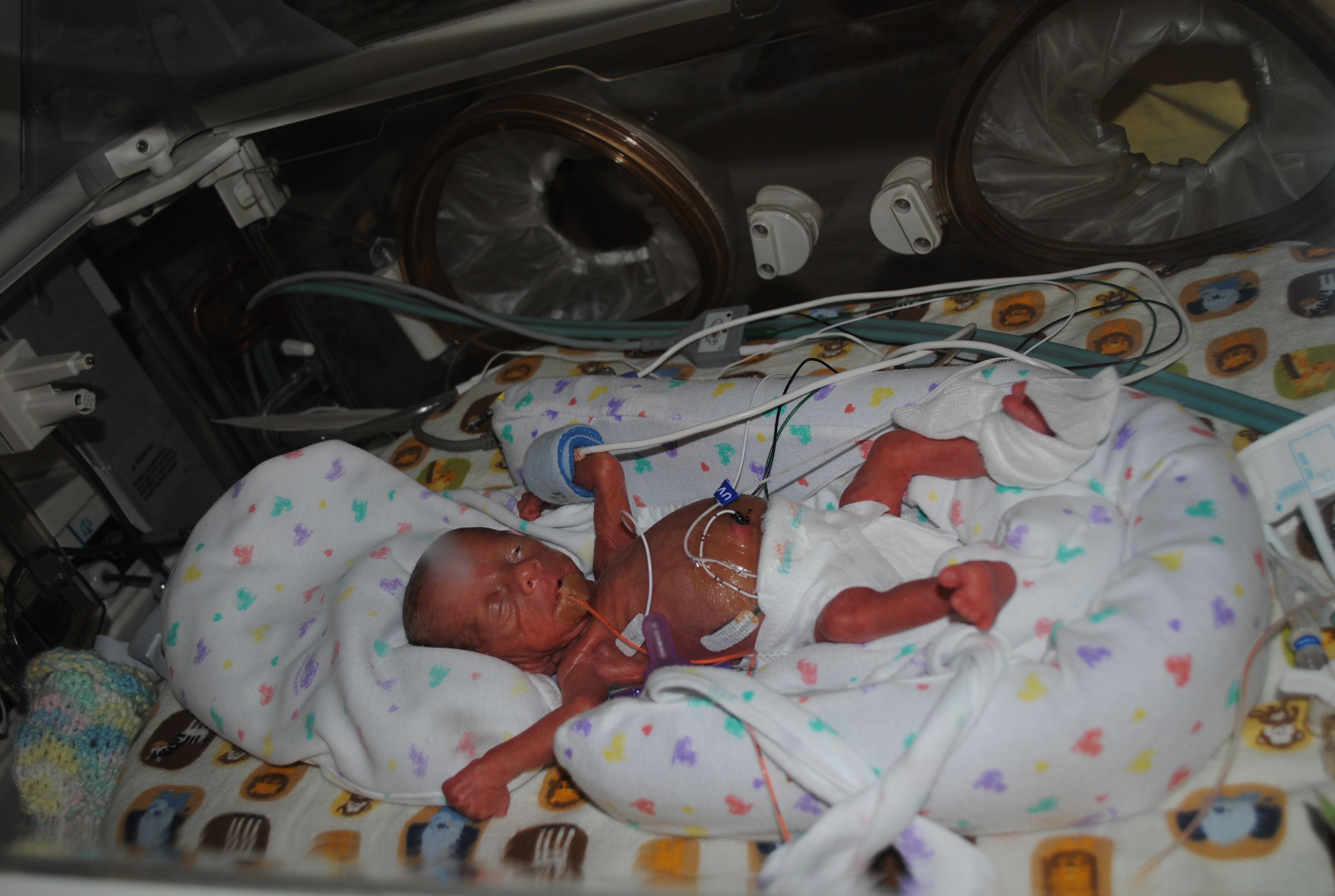 Neither baby required oxygen and things were looking extremely good. However, on 11.9.10, Sam had to be transferred to Children’s Hospital due to a perforation in his small intestine. At that time, it was the single worst day of our lives. A surgery on our little baby, less than 2 pounds? My dad was still with us, and I can remember bawling into his arms as Adam left and went immediately to the hospital.